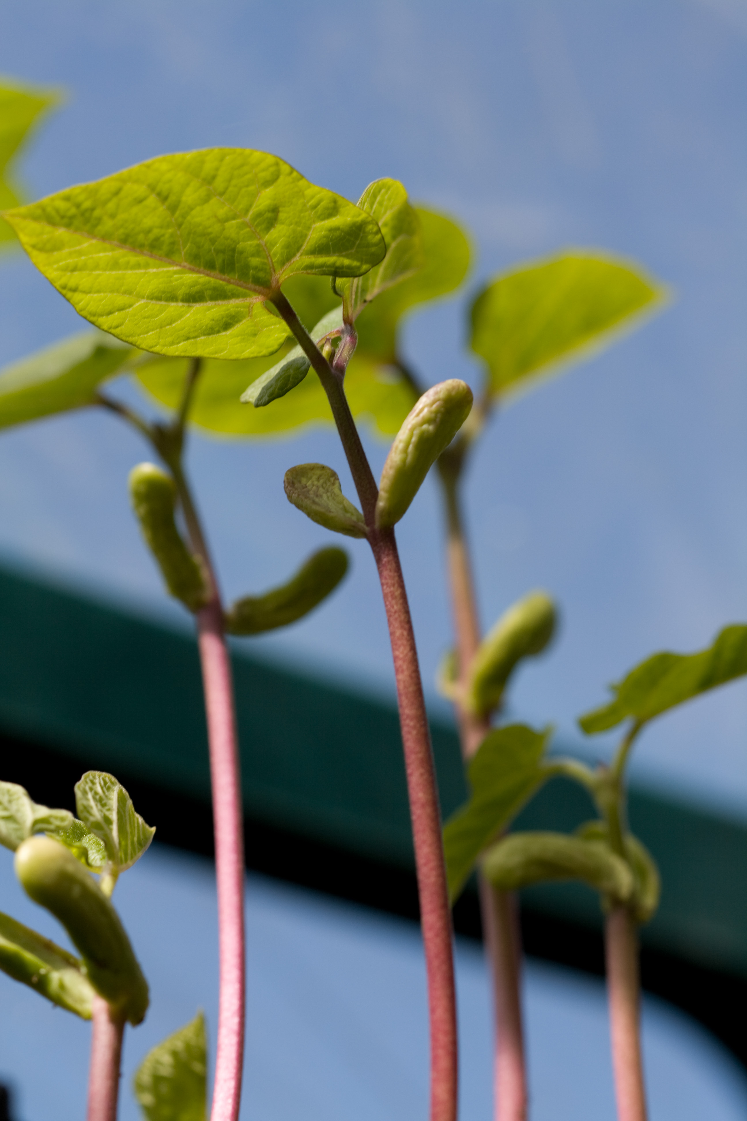 This year’s master plan was to sow some dwarf broad beans (var. Sutton) early in the year and hope to harvest them in June. The idea being that this would then make room for my French beans in the small bed at the bottom of the garden. I started them off in February and planted them out at the end of March. They grew quite well (some in the bed, some in a tub) and flowered a lot – as shown in the photo. However, the beans themselves seemed to take an age to grow – I harvested some in the middle of the month, but these were in the tub which still remains empty in the vain hope that I can get a courgette to grow and get a late crop; and the bed remained quite full – see picture below. I finally pulled the rest out last weekend – they were taking over and all of the salad leaves I had planted had gone quite leggy and had mainly been eaten during the damp weather. I planted out some more French beans as I think the prolific foliage of the broad beans had held some of them back, but I had already planted out my aubergines (new for this year for me), tomatoes and courgettes. Therefore, other than the aforementioned beans and some very healthy-looking (i.e. not yet ready to harvest) garlic, I think that it will be some more salad crops for the next month or two in this bed. The sad thing is that the crop of beans was nothing to shout about – there were on average 3 beans per pod and about 4-8 pods per plant – hardly an abundance. I have decided to give broad beans a miss next year.